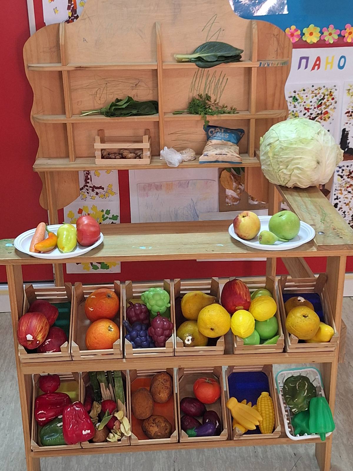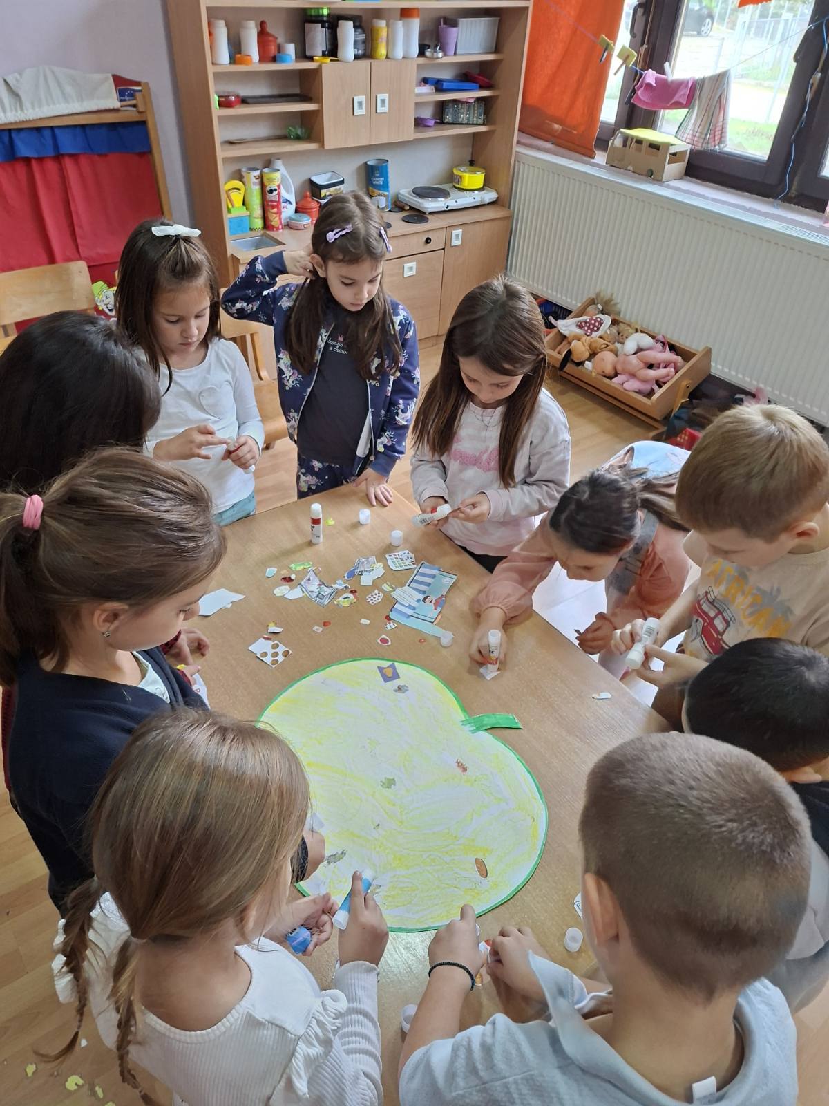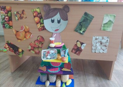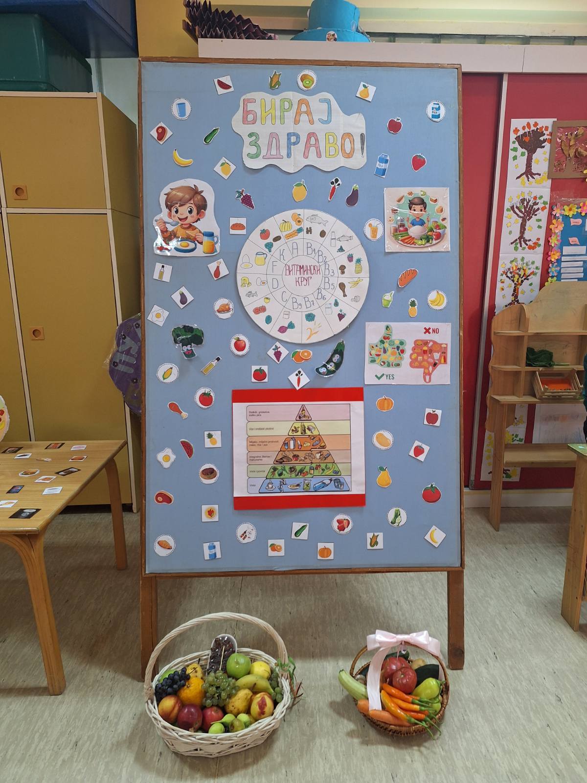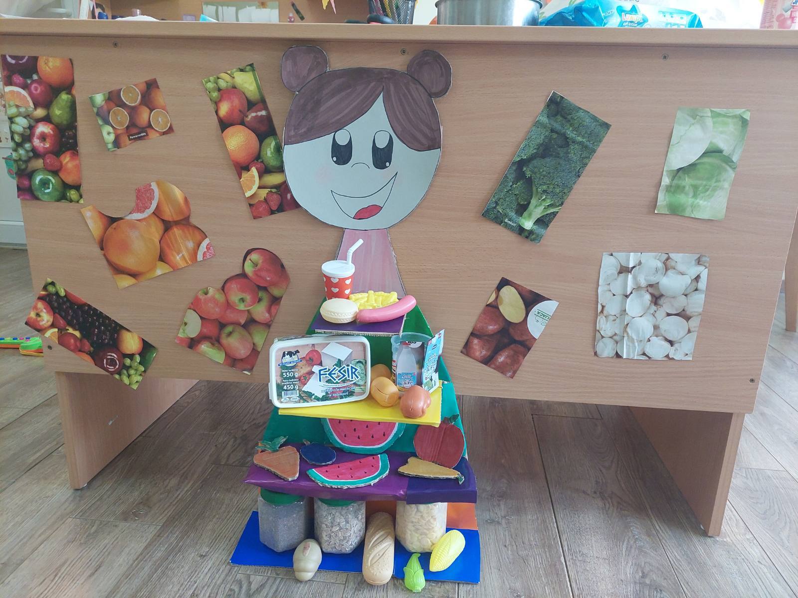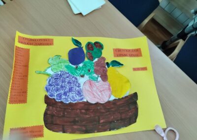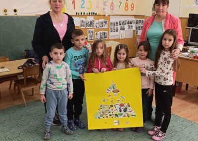 Заједно су направили занимљив плакат — „Пирамида здраве хране“, а потом су деца и васпитачица посетили изложбу домаће хране у школи у Стублу.